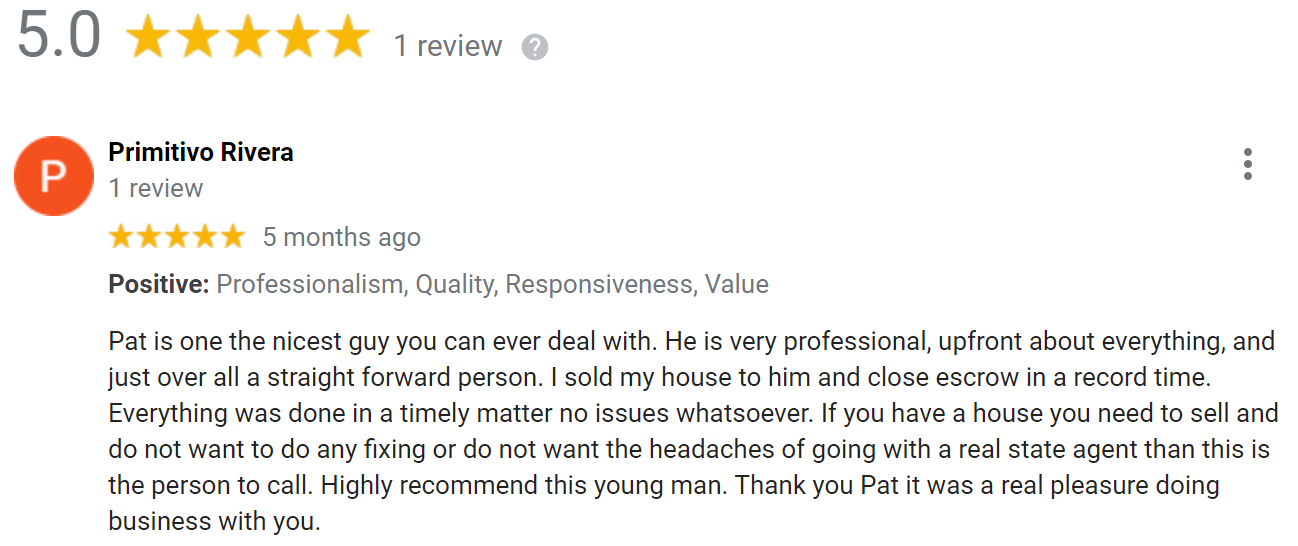 My name is Pat, owner of Pat Buys Houses Cash and I live in Riverside with my wife. We buy a couple houses every month from people who prefer to sell as-is.